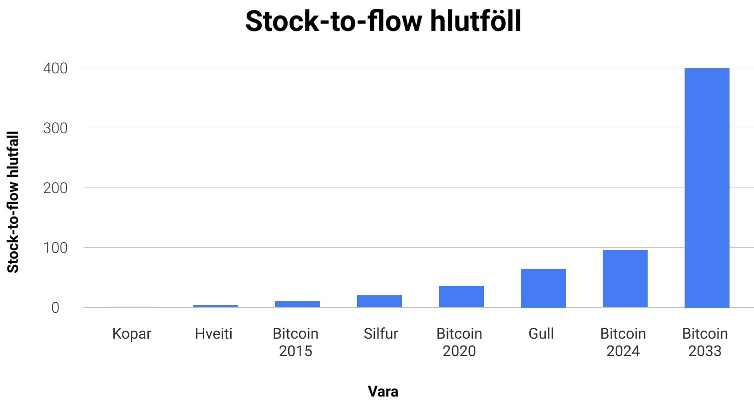 Hærra stock-to-flow hlutfall = erfitt að auka við framleiðslu á vörunni.